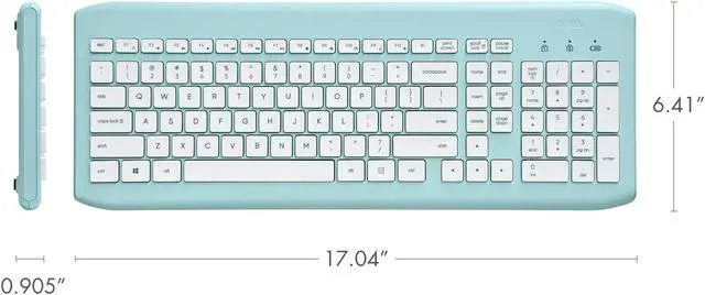 Keyboard measures 17.04 in L x 6.38 in W x 0.91 in H ( 43.2 cm x 16.2 cm x 2.3 cm)