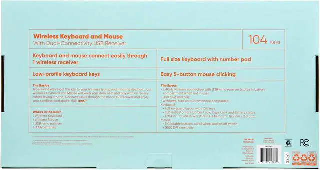 What's in the Box? 1 Wireless Keyboard, 1 Wireless Mouse, 1 USB nano receiver, 4 AAA batteries