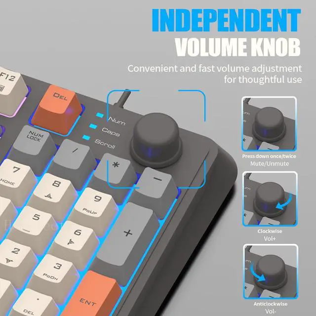 Wired Keyboard with Independent Audio ButtonPress to control play/mute, rotate to adjust the volume. More conveniently control your computer volume whether games or work.