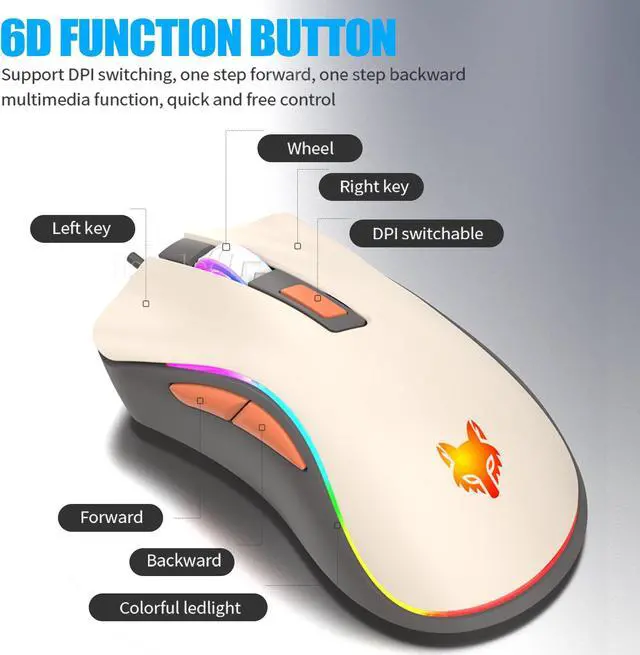 Wired Gaming Mouse800-6000 DPI, easy to switch mouse DPI sensitivity according to gaming need. Skin-friendly frosted coating, rubber scroll wheel, made the gaming mouse easier to control.