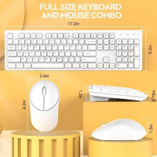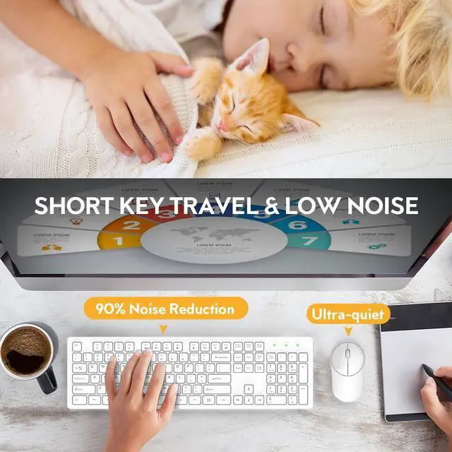 The wireless silent keyboard and mouse are designed with comfort and silence in mind. Low-profile keys and silent click buttons bring a more pleasant experience
