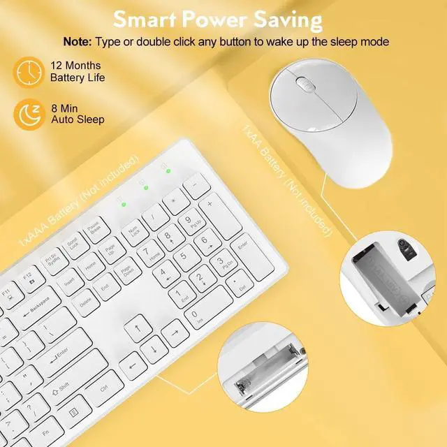 Intelligent Energy Saving Mode: The wireless mouse and keyboard combo have the function of automatically entering power saving state. When they are in sleep mode, you can wake them up with just a press of a button when you need them