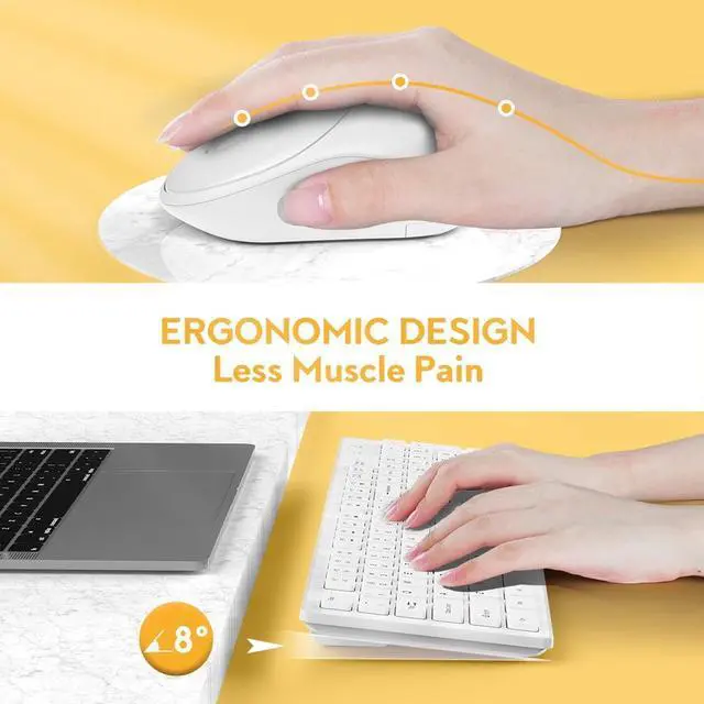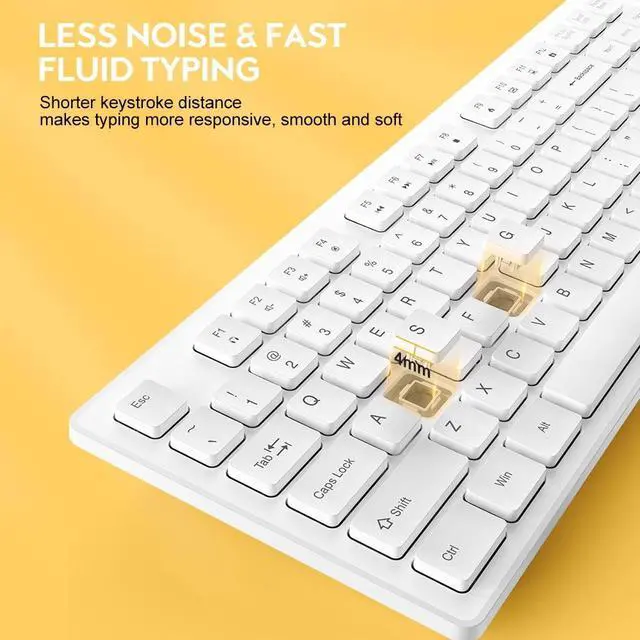 Low Noise: The wireless silent keyboard and mouse are designed with comfort and silence in mind. Low-profile keys and silent click buttons bring a more pleasant experience