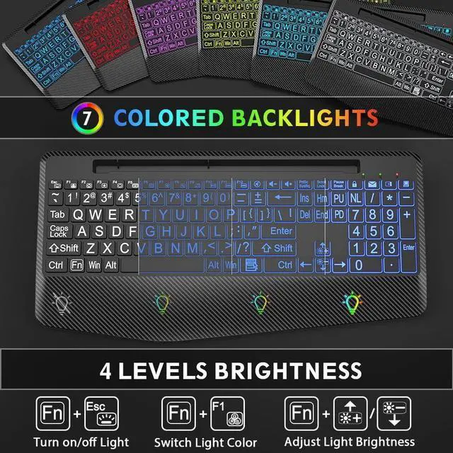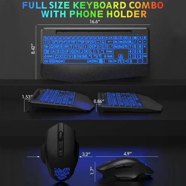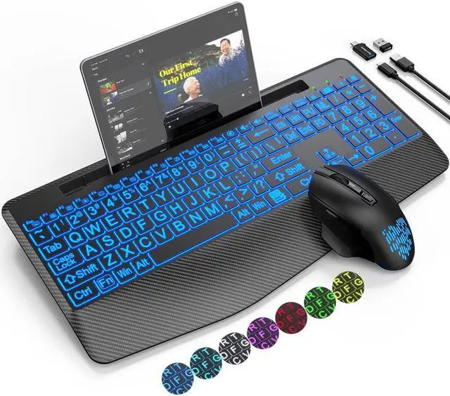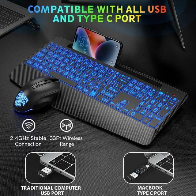 Choose Your Favorite Color: The wireless keyboard comes with 7 switchable backlights and an RGB mouse that changes colors automatically. It can provide you with a different visual typing experience. The illuminated keys allow you to type easily even in a dark environment.
