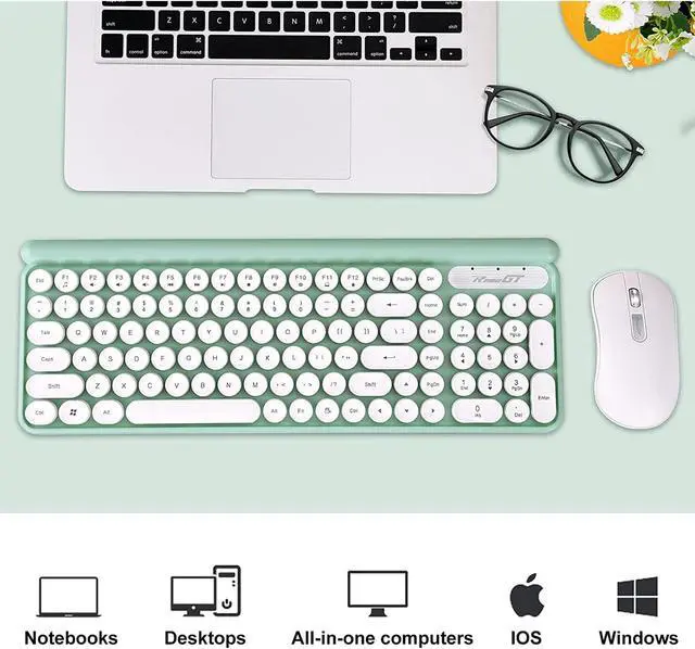 Wireless Keyboard and Mouse Combo, RaceGT Typewriter Keyboard Mouse Combo, 2.4G Silent USB Mouse, Quiet Cordless Cute Retro Keyboard Mouse Set, for Windows, Computer, Desktop, PC, Laptop, Green
