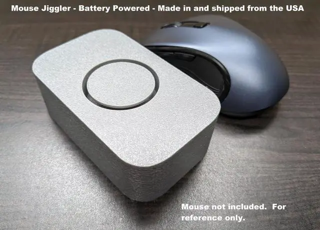 Crafted with 3D printing technology, this mouse jiggler has a unique and modern look that is sure to complement any workstation. And unlike traditional mouse jigglers, this one is completely wireless, eliminating the need for any cords or wires. Simply insert a AA battery, and you're good to go for nearly a year of continuous use.