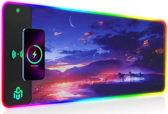 - A special feature of this mouse pad is that a 10W Qi quick-charge panel is integrated in, so that you can easily and quickly charge your mobile phone or bluetooth headphones while you are playing or working.