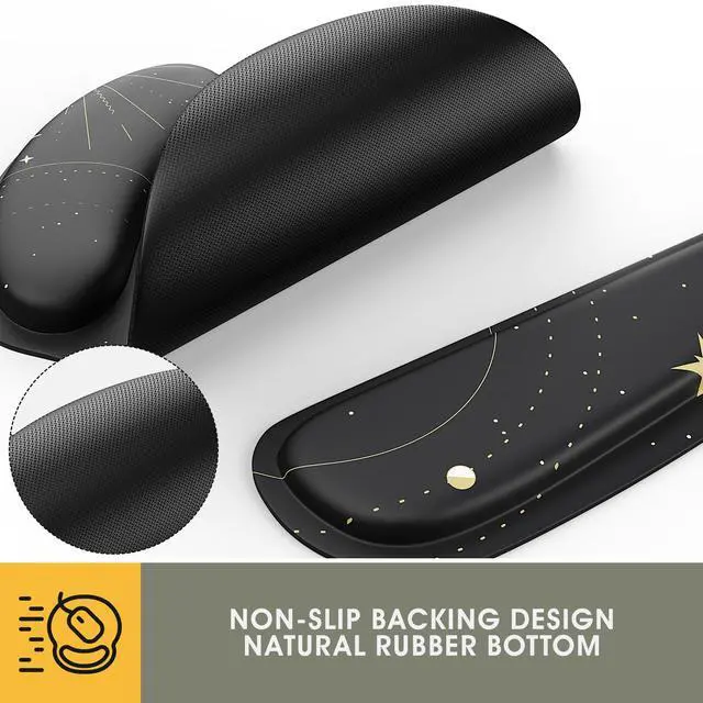 Keyboard Support & Mouse Pad Wrist Rest Set- Keyboard wrist rest( 17.3 x 3.2" ) and mouse pad with wrist rest (9x10"), which is perfect size for keyboard and mouse. Comfortably support your hands and wrists while using your desktop computer, laptop notebook. Perfect for gamers, office workers, editors designers, etc.
