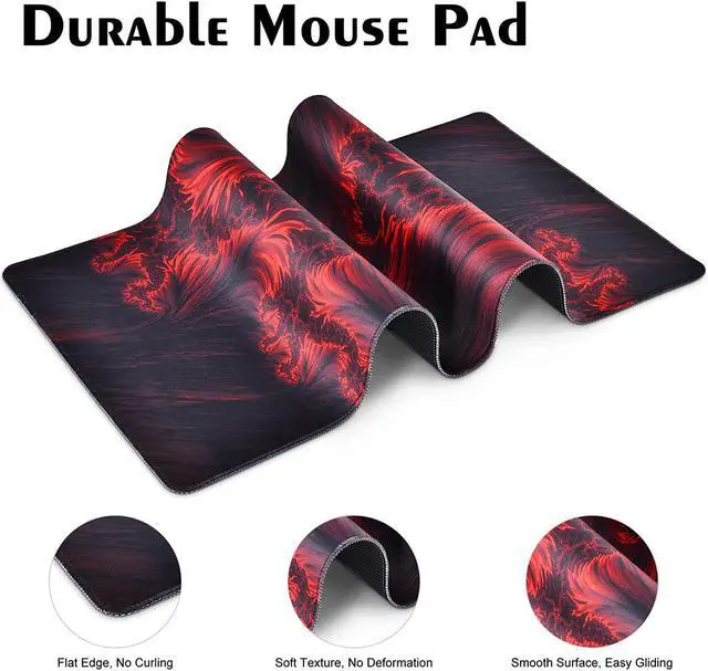 Large Mouse Pad with Bright Red Pattern Perfect for Gamer!Durable Large Mouse Pad Premium-textured, soft surface and flat edge. Large size to ensure full movement, andlargearea to place your keyboard, mouse pad, phone, Ipad, notebook