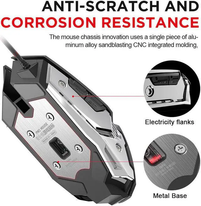 Silent Gaming MouseAdopt advanced sensor provides silent clicks. The aluminum base add extra weight for gaming specially.