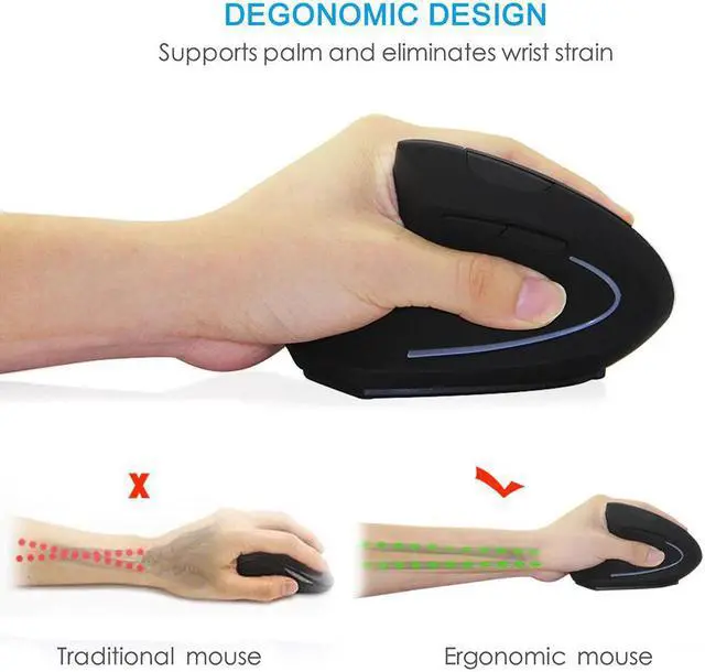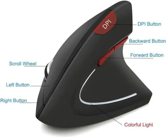Wireless Vertical Mouse Ergonomic Gaming Right/Left-handed Mouse USB Optical Mice With Mouse Pad For Computer PC LaptopNote:1.Please choose the item that you need.If you only order the mouse pad, we only send the mouse pad and don't send the mouse.2.This mouse backward button and forward button cannot be used for Macbook and Computer.3.This mouse has a sleep function,3-5 minutes is normal sleep,shake the mouse can wake up,8-10 minutes is deep sleep,need to press the left and right keys to wake up.4.If the mouse work anomalous,you would better use it with mouse pad or install a new battery with other computer.5.Any questions,welcome to contact with me help you solve the problem first.Model Name:5th Wireless Vertical MouseColor:BlackVersion:Right/Left HandPower supply:2*AAA batteries(not including)Demension:125*65*82mmNet weight:109gAdjustable DPI:800-1200-1600Material:ABSButtons:Left/Right,Forward/Backward,Scroll WheelApplication:PC gamer,Desktop,Notebook,Laptop100% brand new and high quality.Ergonomically designed, optical tracking technology, working on many different surfaces and ideal usage for home, office or game.