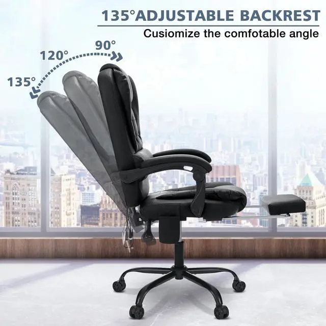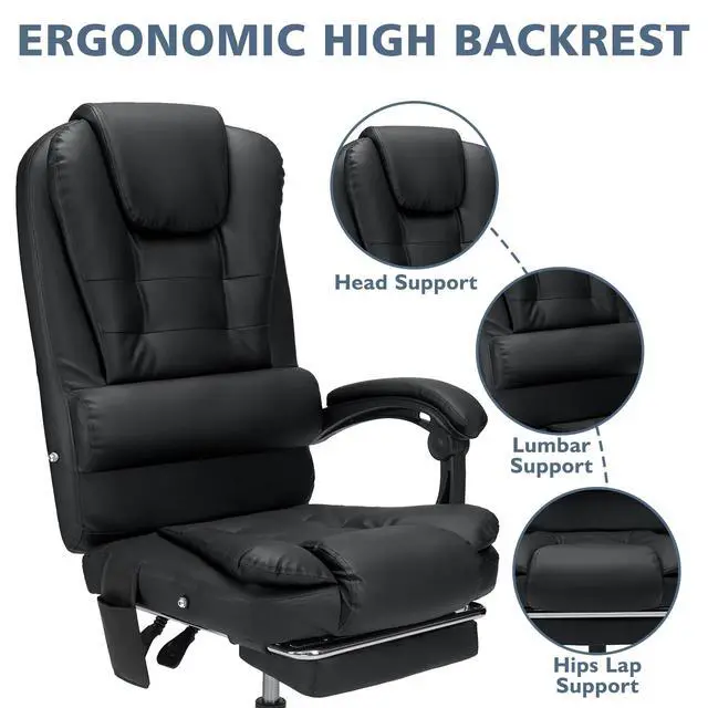 DIXSG Executive Office Chair Massage High Back Leather Office Chair with Footrest Reclining Computer Desk Chair Lumbar Back Support Swivel Rolling for Home Office Black