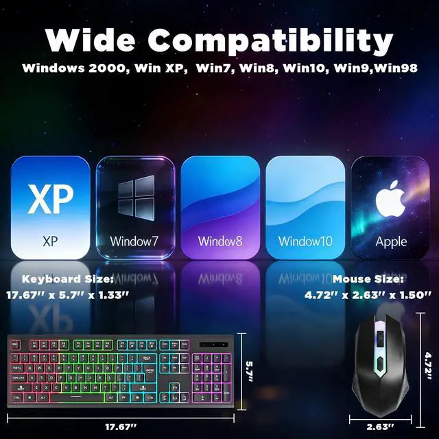 - Ergonomic & Lightweight Design for ComfortDesigned for extended comfort, the light up keyboard is lightweight and features an ergonomic shape. The mouse (4.7*2.6*1.5 inch) fits naturally in your hand, while the compact keyboard reduces strain by keeping your arms and mouse in a more comfortable, closer position.