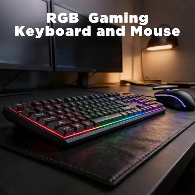 Unleash your gaming passion with this RGB wired keyboard and mouse combo. Designed for gamers, it features a vibrant backlit 60% compact keyboard that saves space, and a high-precision mouse with 3-speed DPI tuning (up to 3200) for versatile control. Lightweight and perfectly sized, it ensures comfort during long sessions. Plug and play for instant setup on PC and laptops. Enjoy a seamless, immersive gaming experience right out of the box.