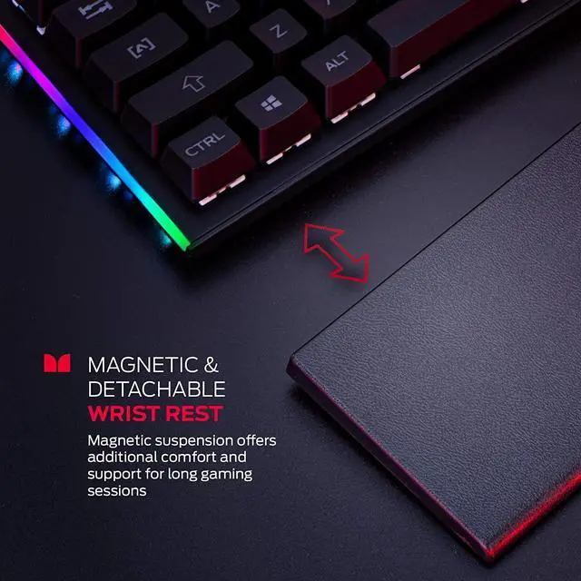 - DETACHABLE MAGNETIC PALM REST: The Monster computer gaming keyboard includes an ergonomically designed magnetic palm rest that provides hours of comfort, this palm rest is easy to attach or remove depending on your playstyle and game needs. The slim profile of the palm rest is easy to store when not in use and can be quickly reattached with secure magnetic connectors.