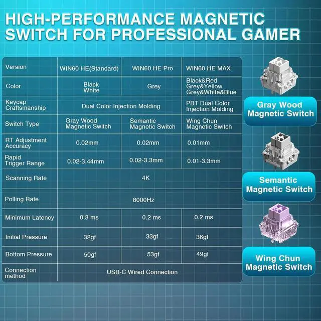 - Compact 60% Design: With its space-saving 60% layout small keyboard, the Win60 HE is ideal for gaming, work, or travel. Its compact size saves desk space without sacrificing functionality, making it perfect for gamers and typists alike