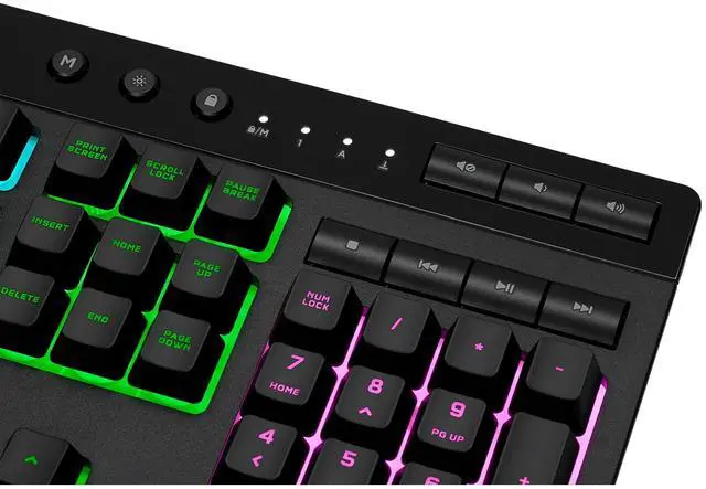 DIXSG K55 RGB PRO gaming keyboard is your first step toward enchanced performance. Stay one step ahead with six dedicated on-the-fly programmable macro keys. Multi-key anti-ghosting ensures your simultaneous keypress combos are executed the way you want. The dedicated volume and media playback buttons enable control of all your media without interrupting the game. RGB backlighting and intuitive lighting modes provide expressive lighting options, all under your control.