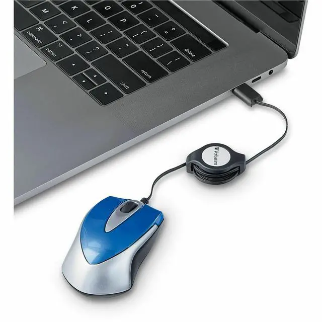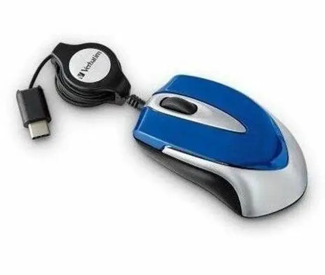 Go Mini! The Blue USB-C Mini Optical Travel Mouse from Verbatim works great on the go. Featuring USB-C connectivity, the ultra-portable mouse takes up little space and is ideal for use with your USB-C equipped notebook or laptop. And theres no need to wrap the cord around the mouse or deal with tangles because the wired mouse features a convenient, retractable USB cable. On a plane or in a car, on the bus or on the train, this tiny mouse is the ideal accessory for business travelers, students, and more!