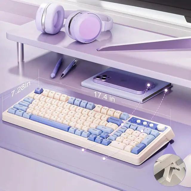 - Full Key Programmable: This custom keyboard supports full-key macro programming to create exclusive shortcut operations, helping you trigger complex commands with a single click and be a step ahead in the game. The unique dual-mode knob design of the purple keyboard wireless allows you to quickly switch between gaming and office modes. In addition, with 3 programmable shortcut keys (M1/M2/M3), the usb keyboard lets you easily set up personalized functions to improve operational efficiency