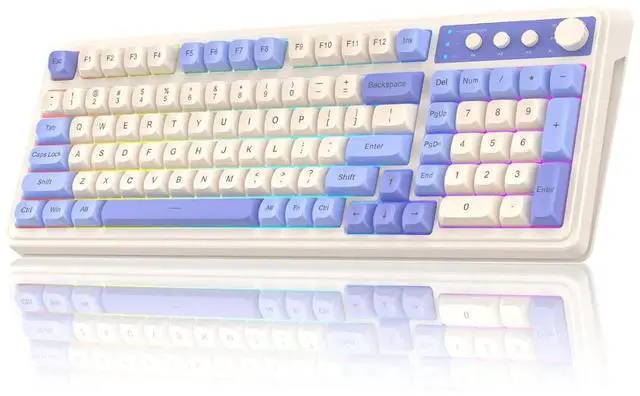 - Full Key Programmable: This custom keyboard supports full-key macro programming to create exclusive shortcut operations, helping you trigger complex commands with a single click and be a step ahead in the game. The unique dual-mode knob design of the purple keyboard wireless allows you to quickly switch between gaming and office modes. In addition, with 3 programmable shortcut keys (M1/M2/M3), the usb keyboard lets you easily set up personalized functions to improve operational efficiency