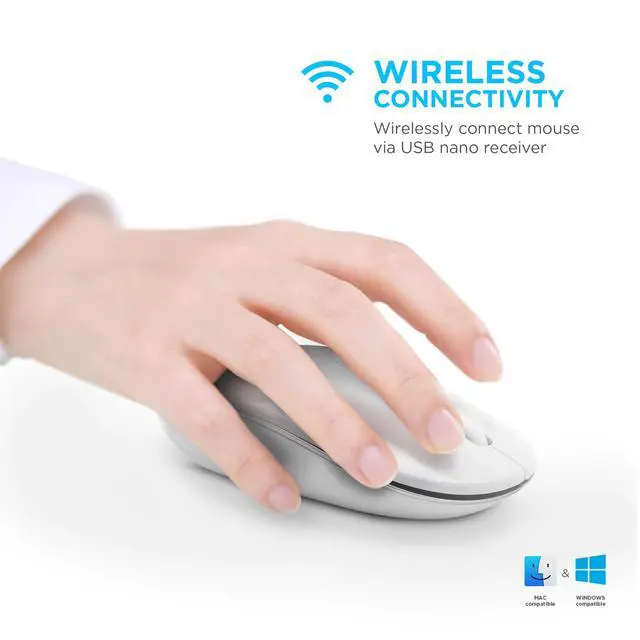 The DIXSG Wireless Optical Mouse allows you to easily connect to your computer without the clutter of cables. Use the mouse at home, the office, or your local coffee shop without the fear of any cable interference. You'll love the freedom our wireless mouse provides when you need to take it with you on the go. Our ambidextrous design provides ultimate comfort so you can use it all day long. The scroll wheel is perfectly placed for convenient scrolling and for fast motion zoom-in and zoom-out viewing. For right or left-handed users, this versatile mouse will become your favorite go-to computer accessory. To get started, simply plug in the USB-C or USB-A dongle to your Mac or PC, insert 2 AAA batteries (included), and turn the mouse on! The power-saving on/off button conserves battery life to ensure an efficient, reliable use every time you need it. To use the wireless mouse you will need a USB-C or USB-A port on your laptop and Mac OS X 10.4 or later, Windows XP, Vista, or Windows 7-10