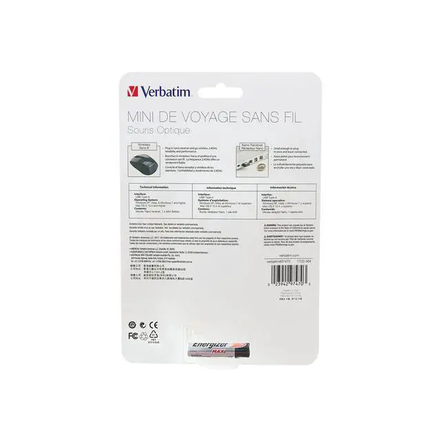 Verbatim 97470 Graphite 3 Buttons 1 x Wheel USB RF Wireless Optical Mouse