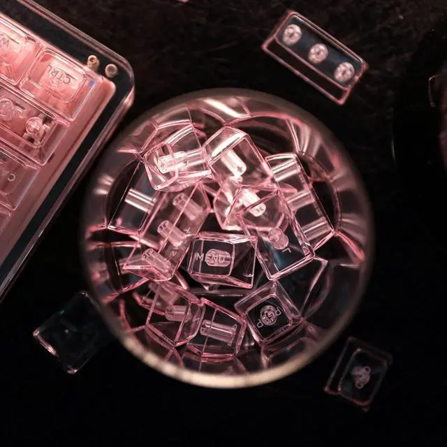 Available in a range of ethereal shades - Crystal Clear, Translucent Black, Luminescent Purple, and Radiant Pink. Illuminate your keyboard with a mesmerizing dance of colors.