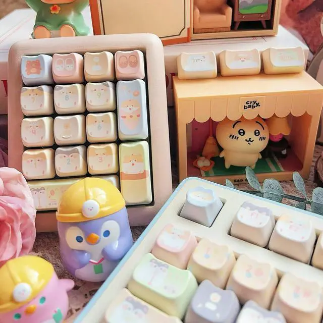 Mao Height Cat Shape Theme keycaps PBT keycaps Customized keycap Set Suitable for 61/87/104/108 Cherry MX Switch and Other Mechanical Keyboards (Cute Mouse)