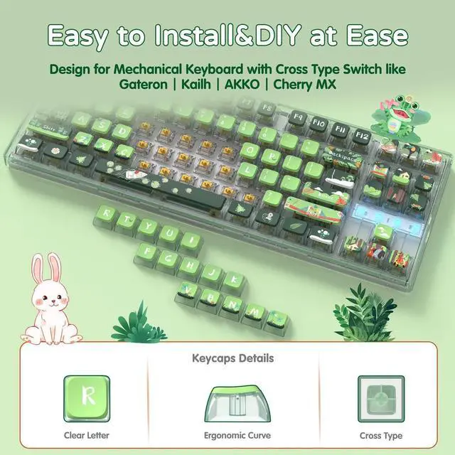 For Cross Type SwitchesThis 120 key PBT keycaps set can fit for most type of mechanical keyboard with cross-type stem like Cherry MX/Gateron/Kailh/Outmu/AKKO/Epomaker switch, etc., easy to install by placing the keycaps in the correct direction into your keyboards cross-type stem, ergonomic ball shape offer your fingertip with perfect surface contact, make every click comfortable, perfect gift for game lovers, kids, friends in any vacation like Christmas, Valentines day.