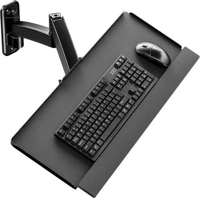 Universal Wall-Mounted Keyboard Tray:This durable steel keyboard tray features a spacious 25.7 x 7.5 typing platform that accommodates most standard and oversized keyboards on the market, with plenty of room for a mouse. The raised edges prevent accidental drops, keeping your keyboard securely in place and enhancing work efficiency