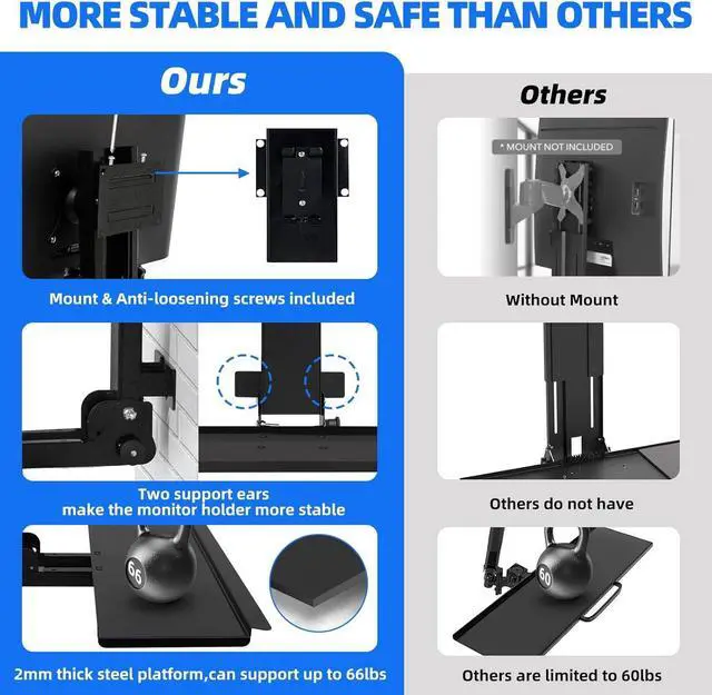 - :Holds Mac Mini/Intel NUC securely under your monitor with 2mm steel plate + dual stabilizing ears. 3X stronger than typical small-PC mounts no sagging even at max extension!