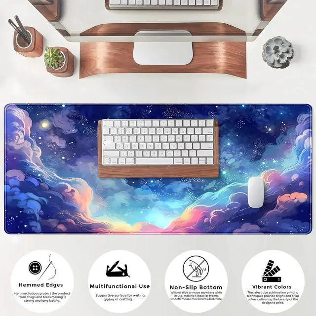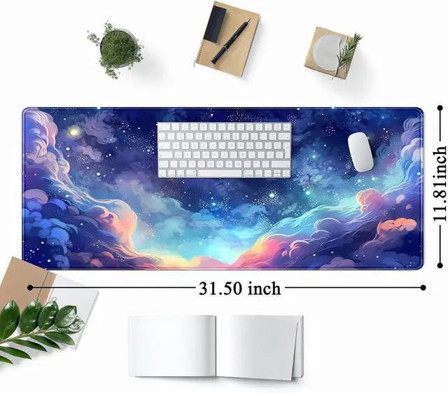 Pastel Anime Space Desk Mat Nebula View Cute Aesthetic Desk Pad Stars Galaxies Deep Dark Blue Cosmos Large Mouse Pad Extended Gaming Mousepad XL Laptop Keyboard Mouse Mat 31.5"x11.8"