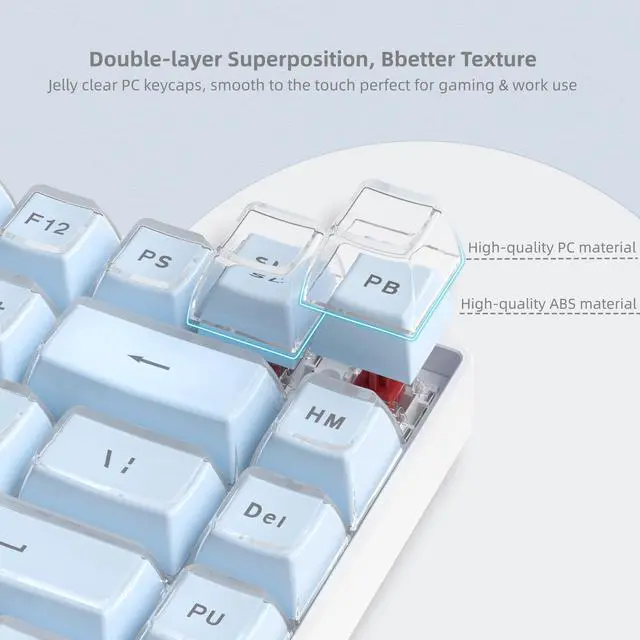 Womier transparent jelly keycaps with a silky PC finish. OEM profile design ensures seamless compatibility for gaming and daily work.