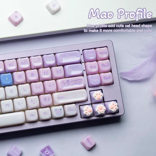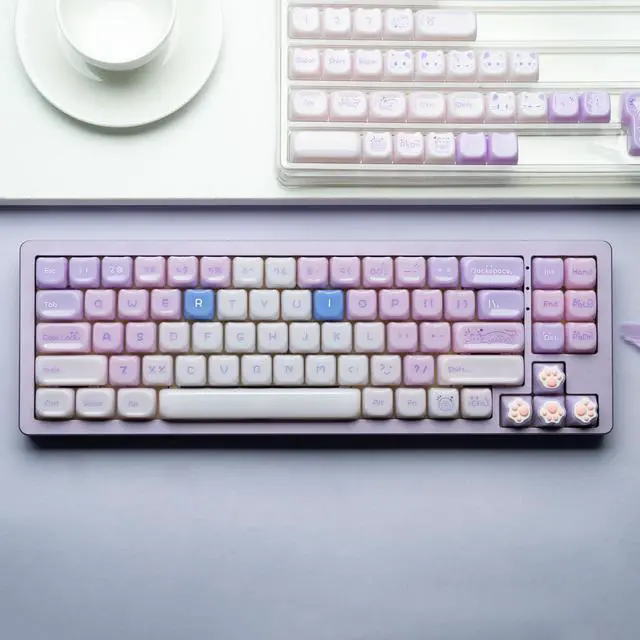 Jelly Jade Keycaps, Translucent Brown Cute Ragdoll Cat Key caps, Mao Profile, Custom 148 Keys Set for 100%, 75%, 65%, 60% Mechanical Keyboard