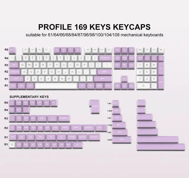 169 keys pbt double shot keycaps purple set