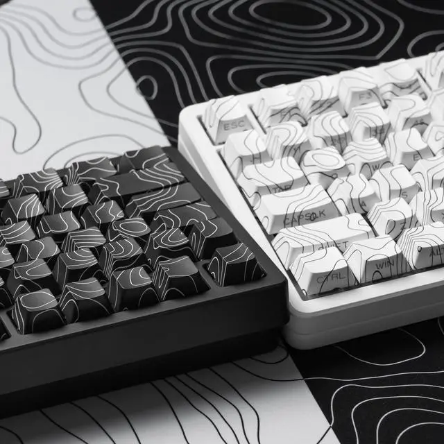 Womier Black Topographic keycaps Double Shot PBT keycaps Shine Through Keyboard Keys Side Printed Key caps Cherry Profile Custom keycap Set for100%, 75%, 65%, 60% US Layout Mechanical Keyboard