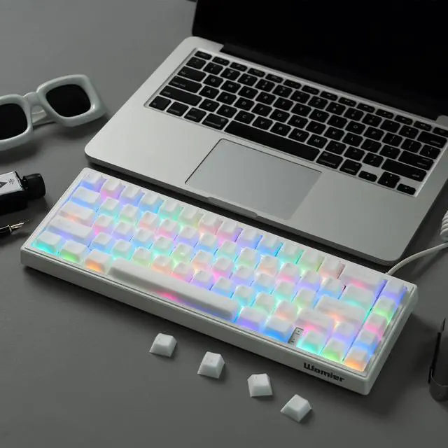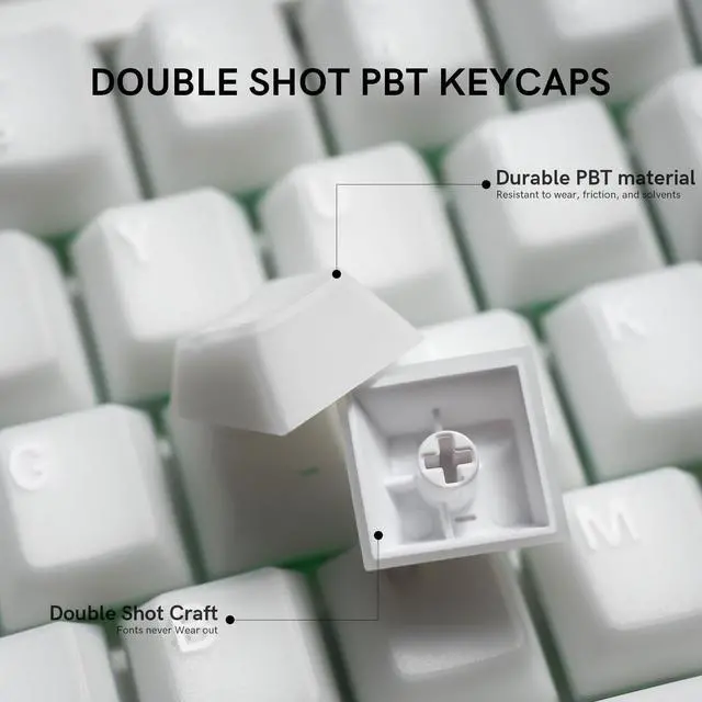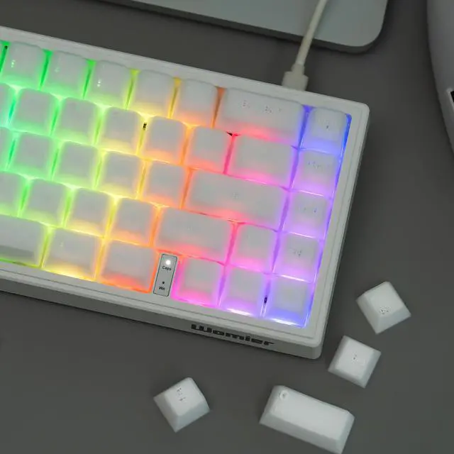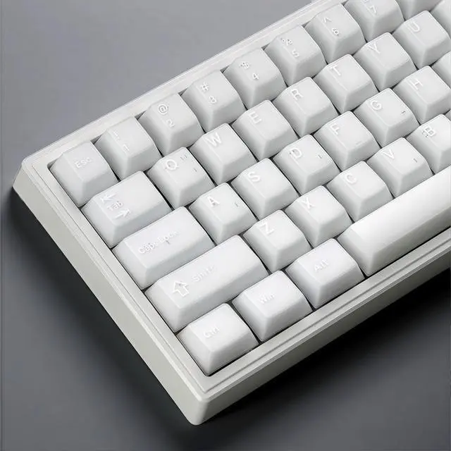 The keycaps have a soft, White hue with subtle variations, resembling the natural tones of White jade stone. They feature a slightly translucent or semi-opaque finish, mimicking the way light passes through jade.