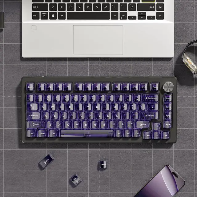 It features a high-gloss mirror polishing process. The keycap surface is smooth like a mirror with no matte texture at all, offering a delicate and silky feel when your fingertips glide over it, while also adding more depth to the dark purple color.