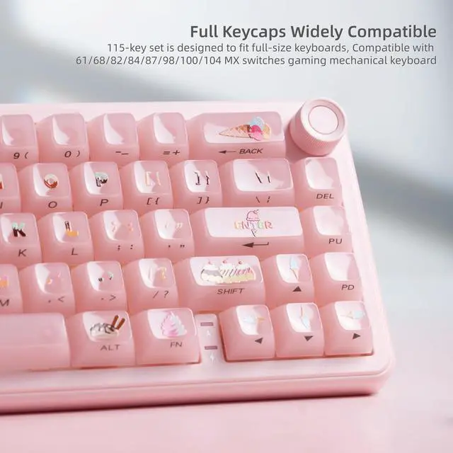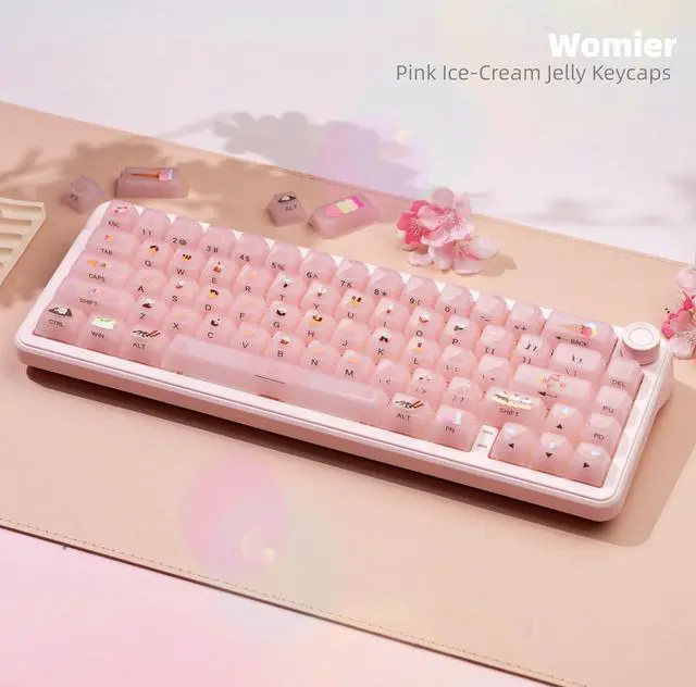 Merchant VideoWomier Pink Ice-Cream Cute Jelly Keycaps:Embrace the style of ceramic keycaps and adorable ice-cream inspired accents, these pink jelly keycaps melt cuteness and clarity into every keystroke