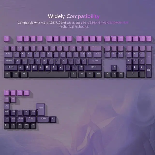 Gradient Purple Shine Through Keycaps 132 Set