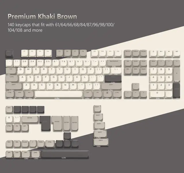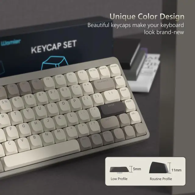 Womier low profile key caps uses the most premium khaki brown, which can perfectly reflect the texture of the keyboard. The lower height makes the keyboard appearance more exquisite, and the keycaps with high cost performance