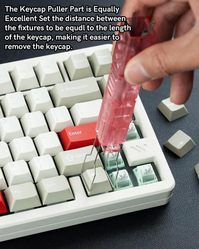 Standard puller wires are too close together, narrower than 1U keycaps. Due to wire stiffness, they’re hard to adjust, and even when adjusted, they tend to revert, making keycap removal difficult.
