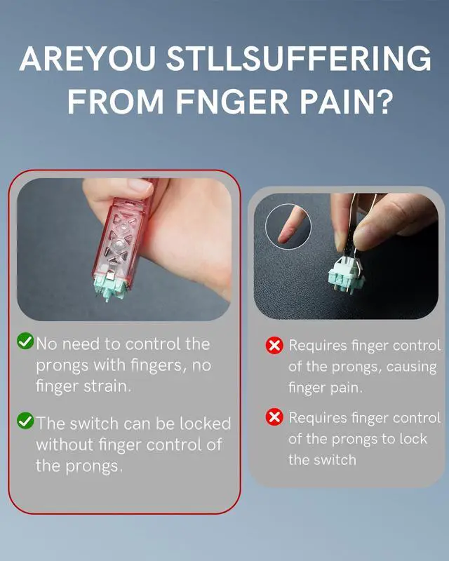 When you're changing the keyboard switch, your fingers have to touch and exert force on the metal clamp. By the time you're done, your fingers are sore and it's hard for the clamp to hold onto the switch latch.