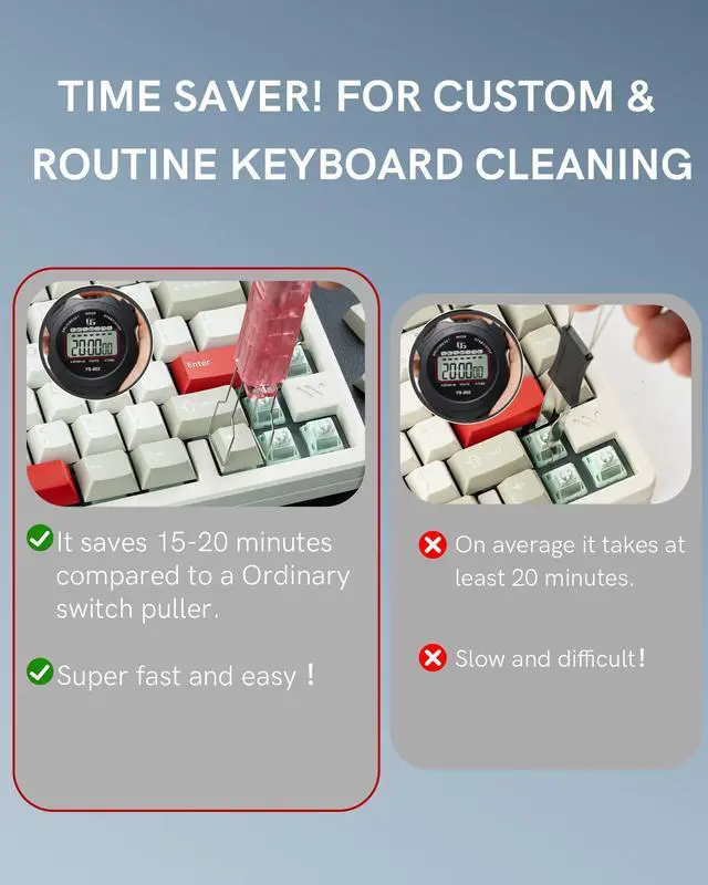 Made from robust manganese steel, the switch puller provides exceptional wear and corrosion resistance. Its durable construction ensures it retains shape and strength under stress, offering outstanding fatigue resistance, ideal for extended use in keyboard customization.