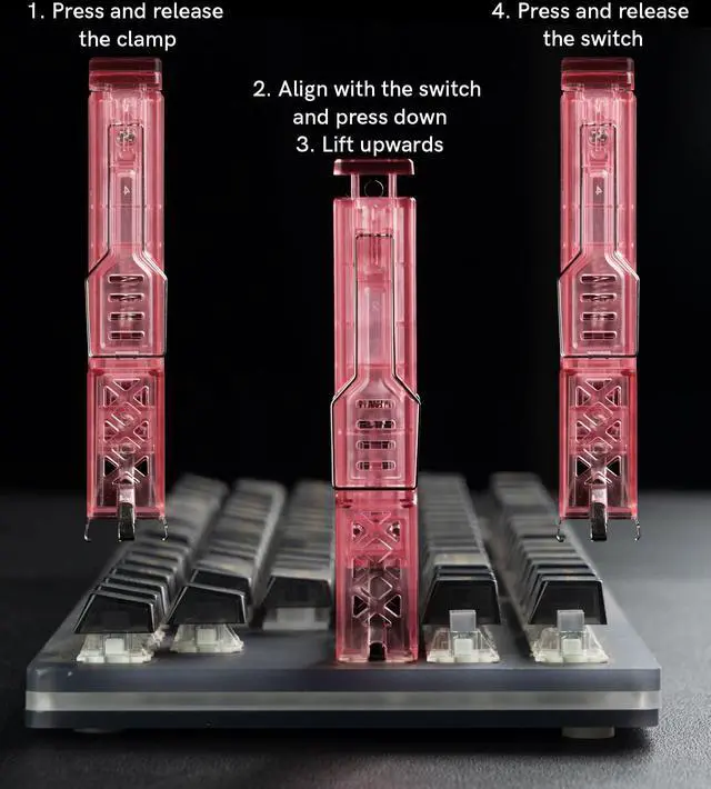 There's no need for your fingers to touch or forcefully control the metal clamp. Simply grip the switch puller, semi-automatically align and grip the switch, and effortlessly remove it.