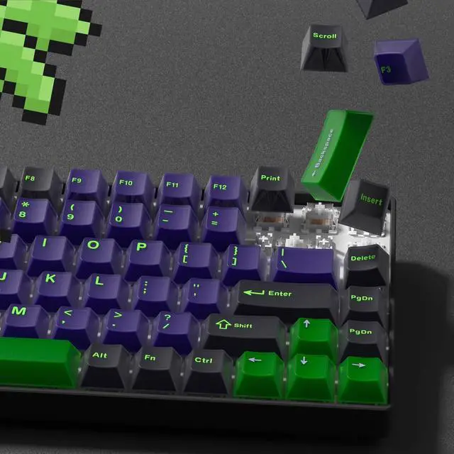 Merchant VideoWOMIER cool black/purple keycap is a new wonderful and unique feeling. The delicate jade feeling combined with the frosted PBT keycap creates a relaxed working or gaming atmosphere for you