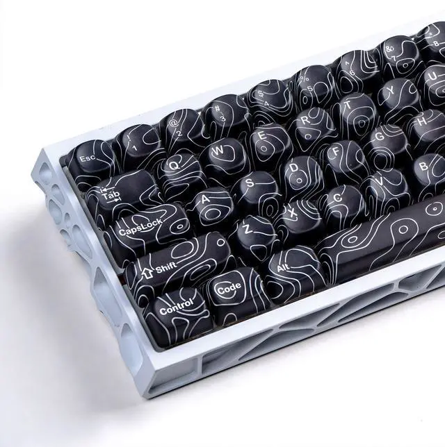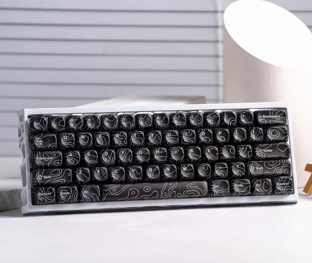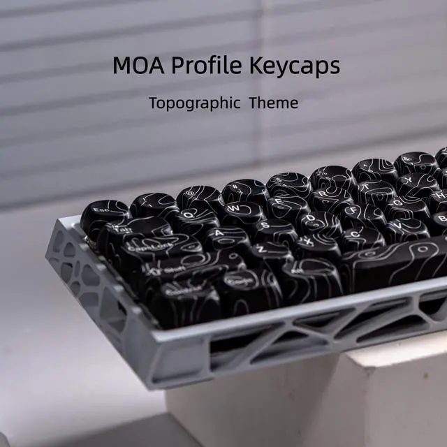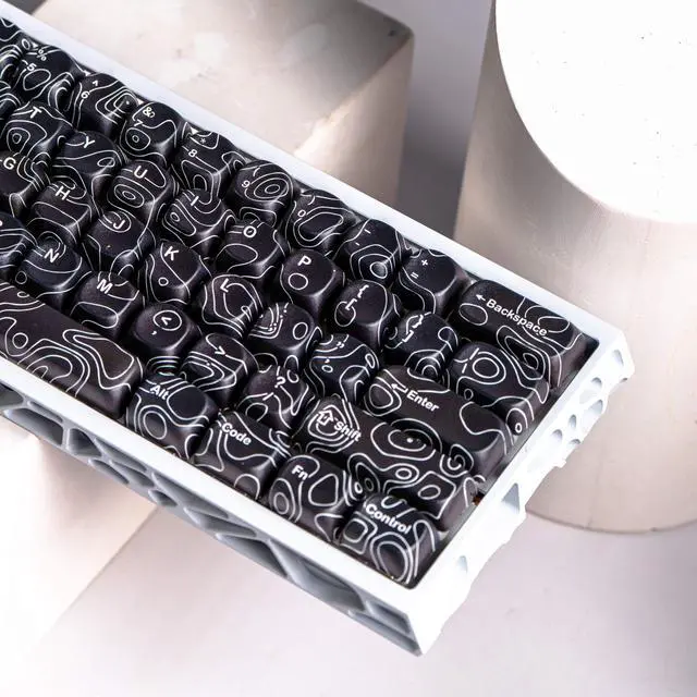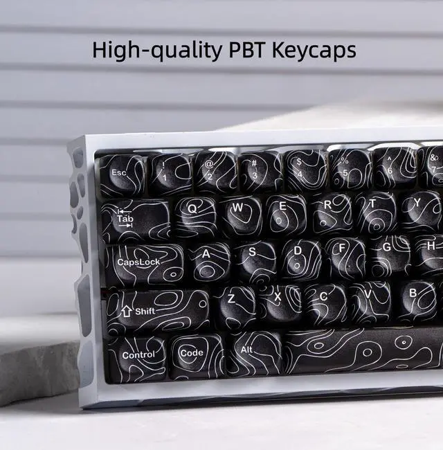 dagaladoo black topographic Keycap Set, MOA Profile PBT Keycaps 60 75 100 Percent,Dye-Sub 129-key Custom Keyboard Keycap for 100% 75% 65% 60% TKL US Layout Mechanical Keyboard