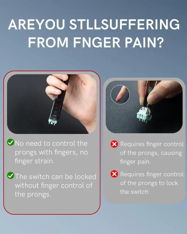 There's no need for your fingers to touch or forcefully control the metal clamp. Simply grip the switch puller, semi-automatically align and grip the switch, and effortlessly remove it.