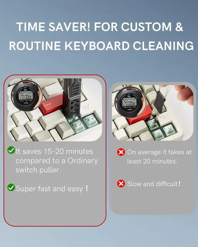 Made from robust manganese steel, the switch puller provides exceptional wear and corrosion resistance. Its durable construction ensures it retains shape and strength under stress, offering outstanding fatigue resistance, ideal for extended use in keyboard customization.