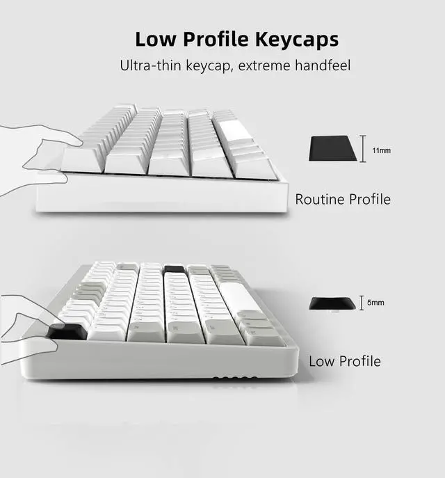 WOMIER low profile keycaps uses the most classic black, white and Grey, which can perfectly reflect the texture of the keyboard. The lower height makes the keyboard appearance more exquisite, and the keycaps with high cost performance